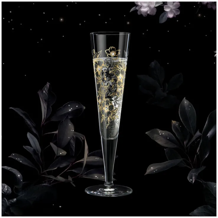 Das RITZENHOFF Champagnerglas BRILLIANTNACHT wurde von der Designerin R. BOHNENBERG kreiert und besticht auf den ersten Blick mit einem edlen Blumenarrangement.