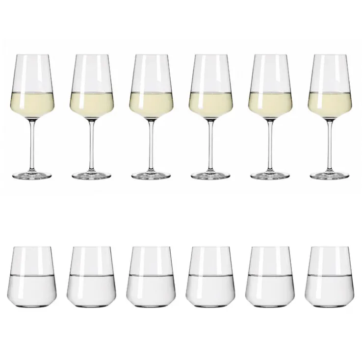 Das RITZENHOFF Wasser- und Weißweingläser-Set LICHTWEISS ist 12-teilig. Es besteht aus reinem Kristallglas. Im Set enthalten sind 6 Trinkgläser à 400 ml Fassungsvermögen und 6 Weißweingläser à 540 ml. Alle Gläser sind spülmaschinengeeignet.