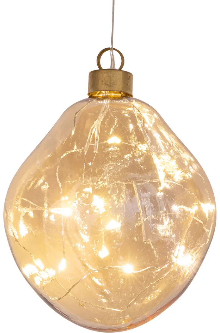 Die Oberfläche des Glasanhängers ist leicht strukturiert und transparent, wodurch das Licht der integrierten LEDs wirkungsvoll zur Geltung kommt. Die Form ist rundlich mit sanften, organischen Konturen. Das Innere ist von kleinen Lichterketten durchzogen, was für einen warmen, gleichmäßigen Lichtschein sorgt und dekorative Akzente im Wohnbereich setzt.