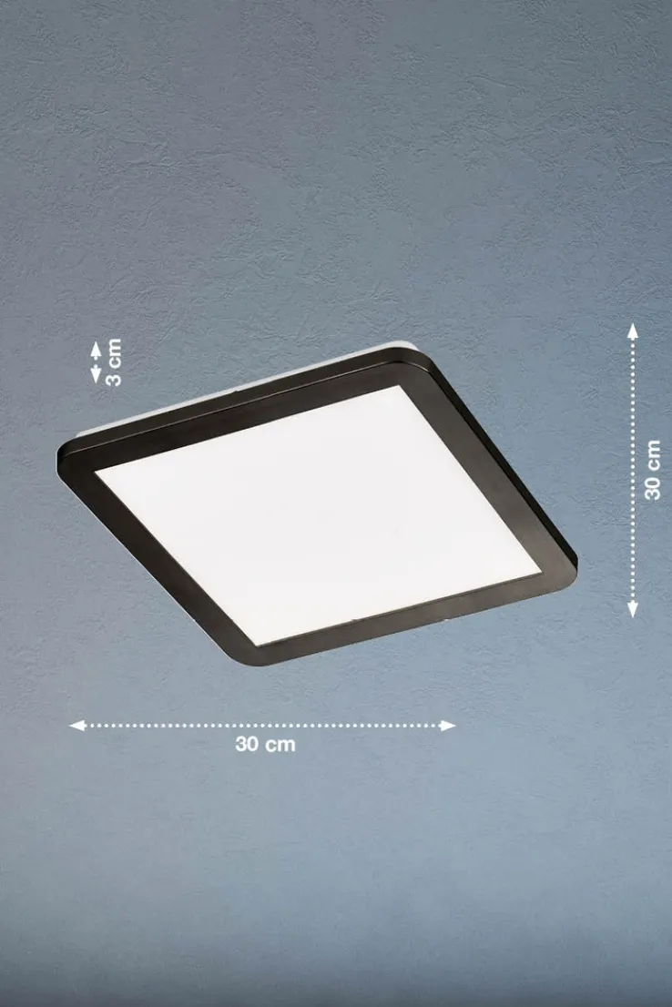 Die moderne LED Badlampe Decke FLAT aus der SCHÖNER WOHNEN-Kollektion hat die Maße 30 x 30 cm und passt an die Decke in Badezimmern und Duschen. Durch die eckige Form und Oberflächen in der Farbe Schwarz fügt sich die 1-flammige Leuchte harmonisch in bereits bestehende Einrichtungen ein. Sie ist über den Wandschalter 3-fach dimmbar und sorgt daher stets für die gewünschte Beleuchtung. Die Badlampe schafft eine angenehme Atmosphäre.