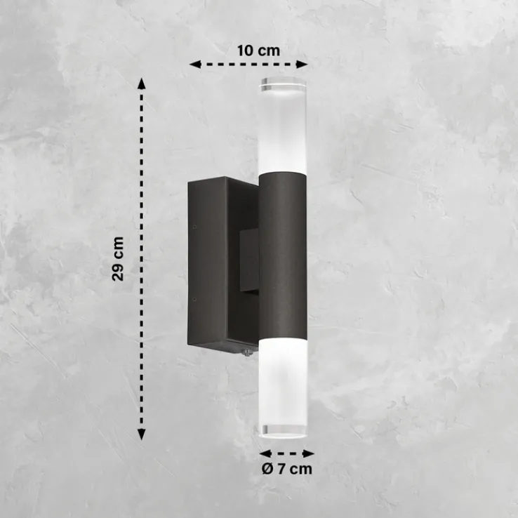 Die schwarze LED Badlampe TWICE aus der SCHÖNER WOHNEN-Kollektion hat einen Durchmesser von 7 cm und passt in das moderne Badezimmer oder die Dusche. Das trendige Up & Down Licht für die Wand kommt neben einem Spiegel optimal zur Geltung. Mit einem Touch-Dimmer ist die Leuchte in drei Stufen dimmbar und sorgt dadurch immer für die benötigte Beleuchtung. Die energieeffiziente LED Badlampe schafft ein angenehmes Licht und eine wohnliche Atmosphäre.
