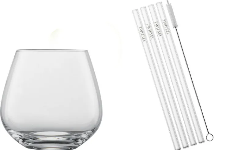 Das 9-teilige Gläser Set AFTER WORK ist bestens geeignet für kühle Drinks mit oder ohne Alkohol. Selbst Wasser lässt sich damit stilvoll servieren. Die Gläser bestehen aus transparentem Glas und haben eine schöne breite Form, sodass auch eine gewisse Anzahl an Eiswürfeln Platz darin findet. Die Glas-Trinkhalme sind wiederverwendbar und lassen sich mit der schmalen Bürste perfekt reinigen. Das gesamte SCHOTT ZWIESEL Set ist spülmaschinengeeignet.