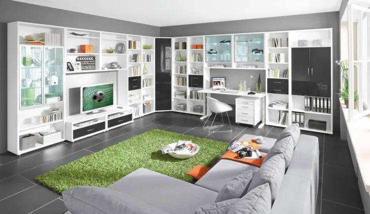 Der großzügig geschnittene, weiße Schreibtisch POINT III ermöglicht Ihnen komfortables Arbeiten im Büro oder zu Hause in Ihrem Arbeitszimmer. Er lässt sich individuell mit weißen Möbeln von porta kombinieren.