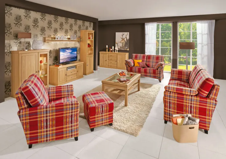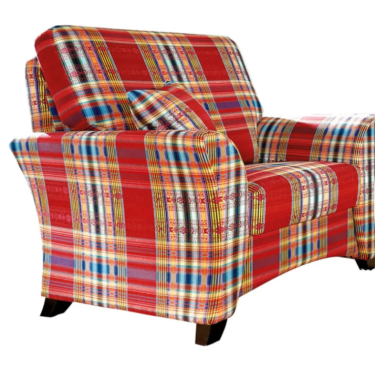 Von seinem stabilen Holzgestell aus Buche zeigt der Sessel SYDNEY der Marke SCHRÖNO vier elegant ausgestellte Füße im Farbton Maron. Sein Sitz ist mit Bonell Federkern versehen, er wird von schön geformten Armlehnen und einem geneigten Rücken mit großem Kissen umrandet. Über der hochwertigen Polsterung liegt ein robuster Stoffbezug, der kariert ist und kräftige Farben miteinander vereint. Der Sessel vervollständigt eine Platz anbietende Garnitur, er kann zudem als einzelnes Möbelstück ausgezeichnete Dienste leisten. Sie können ihn beispielsweise als Fernsehsessel nutzen oder als Rückzugsort für entspannende Stunden mit einem guten Buch. Als einzelnes Polstermöbel käme alternativ der Ohrensessel mit Hocker aus der gleichen Serie des Herstellers SCHRÖNO infrage. Unabhängig von Ihrer Entscheidung wählen Sie mit jedem Polstermöbel von SCHRÖNO ein mit Liebe zum Detail gefertigtes Erzeugnis „Made in Germany“. Das in Delbrück, Westfalen beheimatete Unternehmen verfügt über mehr als 50 Jahre Erfahrung bei der Herstellung hochwertiger Polstermöbel.