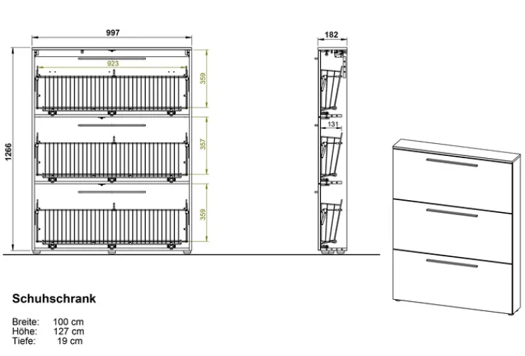 Breite: 100 cmHöhe: 129 cmTiefe/Ausladung: 19 cmGewicht: 31,09 kg