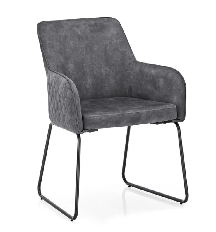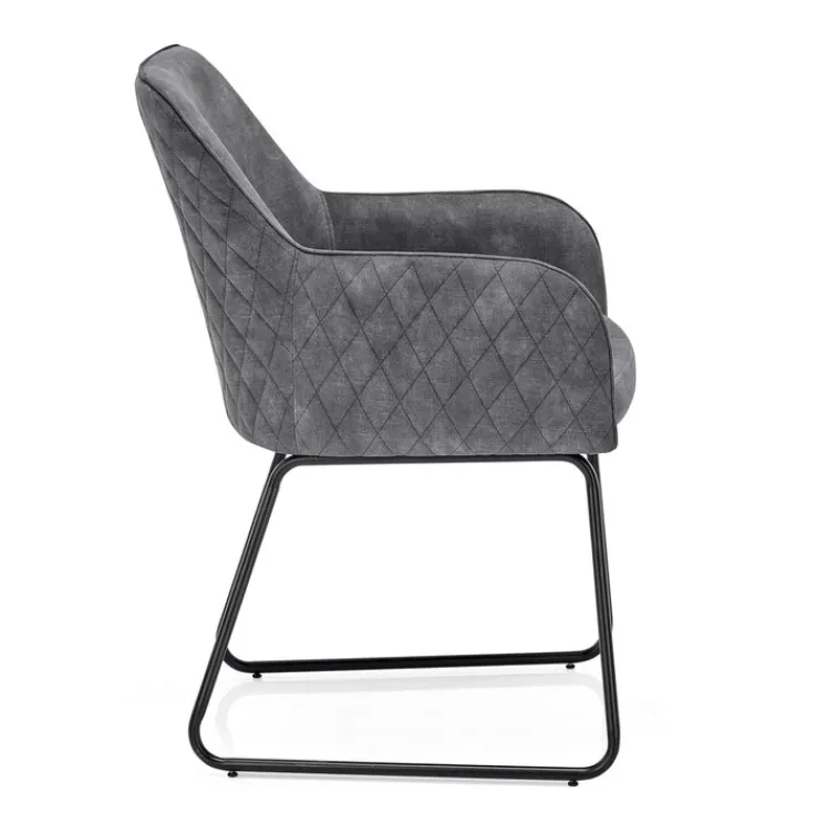 Der set one by Musterring Esszimmerstuhl FONTANA mit den Maßen 60,5 x 85 x 63 cm kombiniert ein schwarz pulverbeschichtetes Kufengestell mit einem bequem gepolsterten Sitz mit Textilbezug. Er ist sehr stabil und lässt sich mit einem Gewicht von maximal 120 kg belasten. Der Esszimmerstuhl ist zudem mit festen Armteilen ausgestattet, die das Aufstehen vom Tisch erleichtern. Ein optisches Highlight ist der Stuhl aufgrund der eleganten Rautensteppung an der Rückseite.