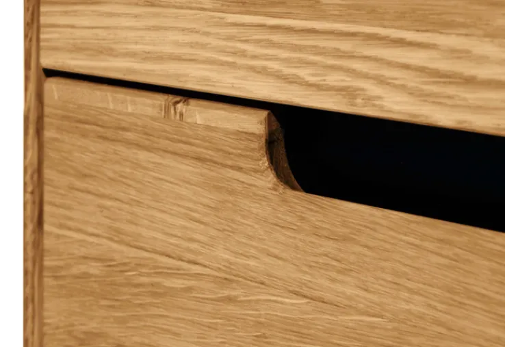 Das Sideboard MILO besticht durch sein modernes Design und die hochwertige Verarbeitung aus teilmassivem Eichenholz. Mit einer Breite von 163 cm, einer Höhe von 83 cm und einer Tiefe von 41 cm bietet es großzügigen Stauraum. Die natürliche Holzmaserung in einem warmen Braunton verleiht dem Möbelstück eine zeitlose Eleganz, die sich harmonisch in verschiedene Wohnstile einfügt.
