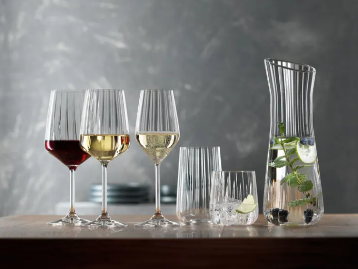 Das SPIEGELAU Weißweinglas LIFE STYLE ist aus klarem, brillantem Kristallglas gefertigt. Mit seinem stilvollen Diamantdesign mit senkrechten Rillen wirkt das Weinglas modern und elegant zugleich. Die bauchige, verjüngte Form ermöglicht es dem Weißwein sich voll zu entfalten und transportiert das Bukett direkt zur Nase. Begeistern kann das Weißweinglas außerdem mit einer erhöhten Bruchfestigkeit und seiner Spülmaschineneignung. Und das Beste ist: Selbst nach zahlreichen Spülgängen ist die hohe Glasqualität in keiner Weise beeinträchtigt.