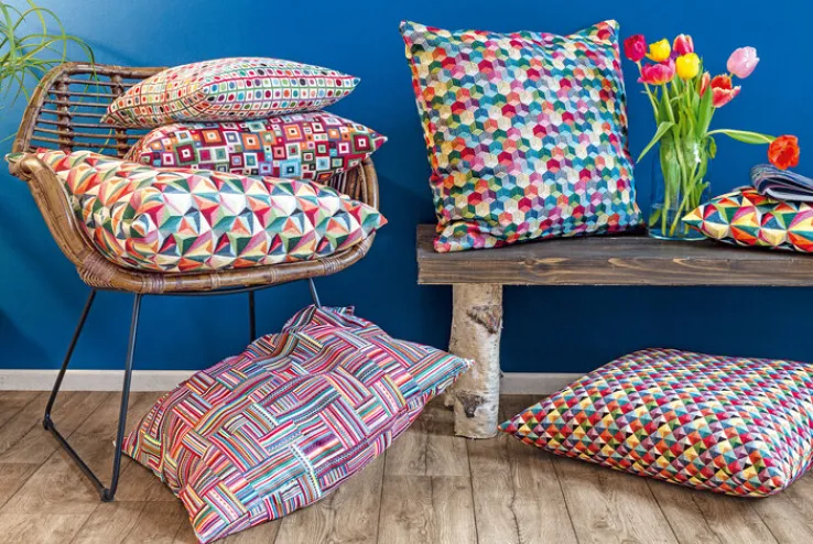 Das Format der Kissenhülle beträgt 40 x 40 cm. Sie besteht aus einem Mischgewebe mit einem Baumwollanteil von 58 %, ergänzt durch 32 % Polyester und 10 % Acryl. Die Oberfläche fühlt sich griffig an und vermittelt eine hochwertige Materialanmutung. Durch die Farbkombination und das grafische Design ist die Kissenhülle vielseitig kombinierbar und eignet sich für viele Wohnstile.
