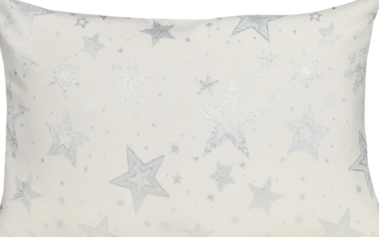 Die Kissenhülle „GLAMOUR STAR“ von Sprügel vereint stilvolles Design mit hochwertigen Materialien. Mit einer Breite von 30 cm und einer Tiefe von 50 cm bietet sie die ideale Größe für verschiedene Kissen. Die Hauptfarbe ist ein elegantes Weiß-Silber, das durch ein funkelndes Sternenmuster in Silber akzentuiert wird. Dieses Design verleiht jedem Raum eine festliche und zugleich moderne Atmosphäre.