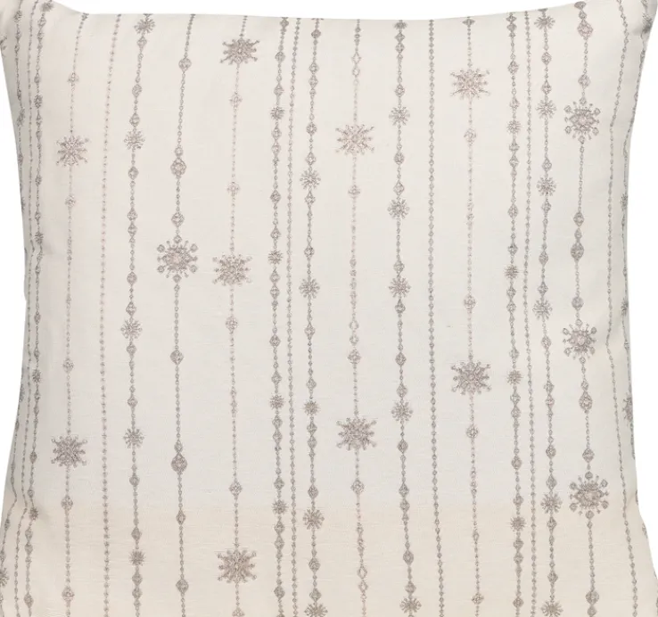 Die quadratische Kissenhülle misst 50 x 50 cm und präsentiert sich in einem dezenten Beigeton mit feinen, kupferfarbenen Akzenten. Das Design besteht aus vertikal verlaufenden Linien, die durch regelmäßige, ornamentartige Muster unterbrochen werden. Die Muster erinnern an filigrane Schneeflocken oder Sterne, die gleichmäßig über die gesamte Oberfläche verteilt sind. Die Oberfläche wirkt durch die strukturierte Verarbeitung des Mischgewebes hochwertig und angenehm griffig. Der Stoff setzt sich aus 40 % Baumwolle und 60 % Synthetikfaser zusammen und ist für den Einsatz im Innenbereich geeignet. Die Kissenhülle vermittelt durch ihre dezente Farbgebung und das klare Muster einen ruhigen, harmonischen Eindruck und lässt sich vielseitig kombinieren. Die Marke SPRÜGEL steht für eine sorgfältige Verarbeitung und eine ansprechende Optik.