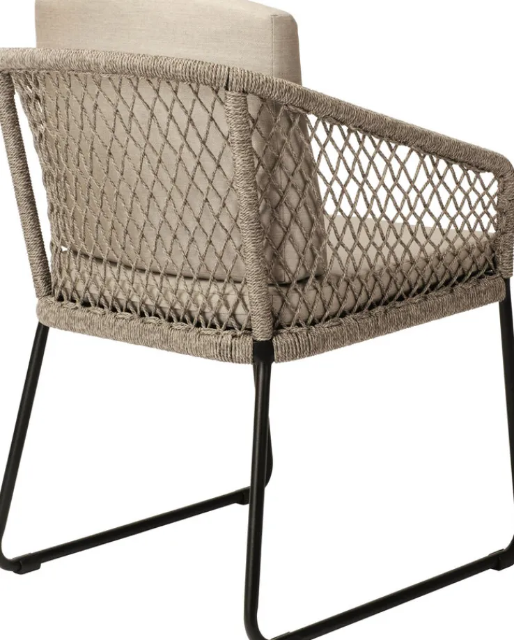 Der STERN Dining Gartenstuhl ODEA besteht aus einem robusten Kufengestell aus Metall in Matt Schwarz und einer Rückenlehne in beiger Geflecht Optik. Durch das Geflecht aus Polypropylen ist der Dining Stuhl strapazierfähig und hält Sonne, Wind und Wetter stand. Ausgestattet mit einem losen Sitz- und Rückenpolster mit Synthetikbezug bietet der Gartenstuhl zudem einen angenehmen Sitzkomfort – auch dann, wenn die gemeinsame Mahlzeit etwas länger dauert. Der elegante Dining Sessel bietet die perfekte Speisehöhe und kann mit einem Maximalgewicht von 120 kg belastet werden.