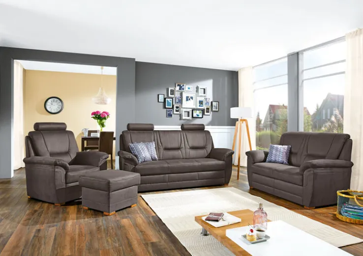 Der gemütliche Sessel IMATRA-H von SYSTEMPOLSTER macht seinem Namen alle Ehre. Für entspannende Stunden beim Lesen, Fernsehen oder bei Unterhaltungen in geselliger Runde ist er ein ideales Sitzmöbel, das ein klassisches Design mit einer modernen Optik verbindet Mit einem Stoffbezug in der Farbe Nougat und antikfarbenen Holzfüßen verbreitet der Sessel eine stilvolle Eleganz im Wohnzimmer. Ein ausgezeichneter Sitzkomfort wird durch eine opulente Polsterung mit einem Super-Bonell-Federkern und einem hochwertigen Polyätherschaum garantiert. In diesem einladenden Sessel mit Kopfstütze können Sie wunderbar relaxen und den stressigen Alltag hinter sich lassen.