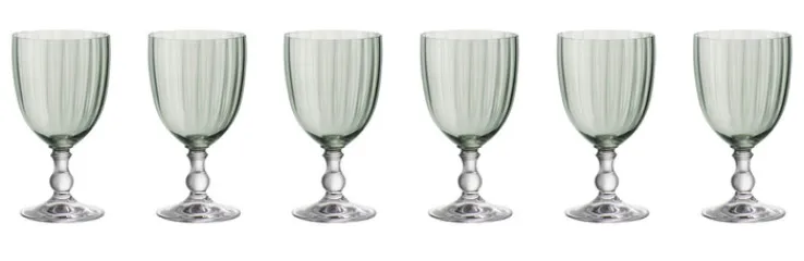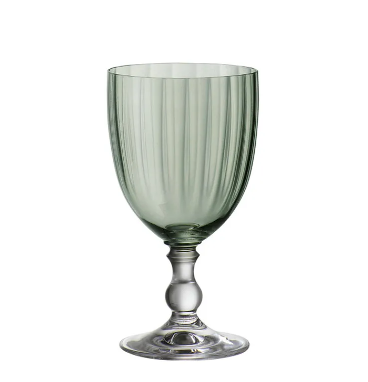 Der TAFELWERT Rotweinkelch GIORGIA überzeugt mit einer romantisch stilisierten Farb- und Formgebung. Die Rotweinkelche sind aus hochwertigem Kristall gefertigt und in zartem Grün eingefärbt, was zusätzlich eine nostalgische Wirkung erzielt. Sie sind in leichter Tulpenform mit schöner Riffelung gestaltet. Der kurze Stiel ist zusätzlich verziert und verfügt über einen standfesten Fuß. Der wohltemperierte Rotwein kann sich bei einem Fassungsvolumen von 350 ml optimal entfalten. Ein besonders ansprechender optischer Effekt ergibt sich, wenn unterschiedliche Gläser der TAFELWERT Serie miteinander kombiniert werden.