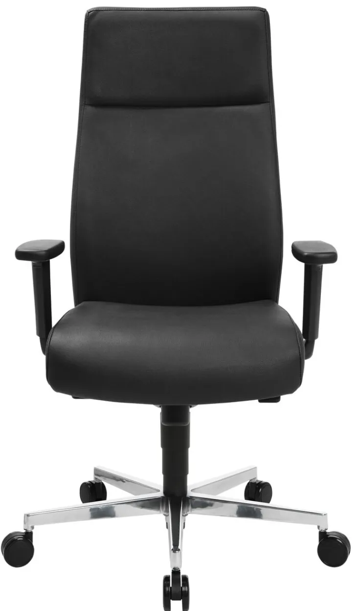 Der komfortable Drehstuhl WORKART von Topstar ist die perfekte Ergänzung für das modern eingerichtete Arbeitszimmer oder Homeoffice. Durch die schicken Polster in der Farbe Schwarz und das silberfarbige Fußkreuz passt der höhenverstellbare Stuhl zu verschiedenen Einrichtungsstilen. Für einen hohen Sitzkomfort verfügt der Drehstuhl über eine hohe Rückenlehne, verstellbare Armlehnen und ein weiches Sitzpolster. Die hochwertigen Sicherheitsdoppelrollen gewährleisten eine nahezu lautlose Fortbewegung und schonen empfindliche Teppichböden.
