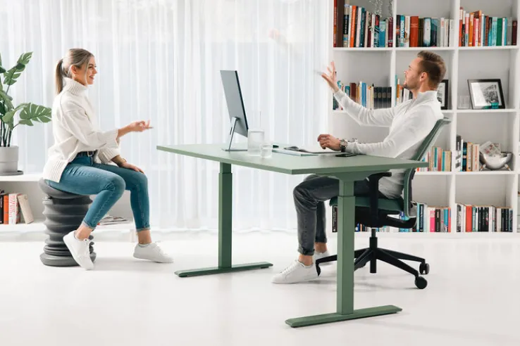 Das futuristische Design des Hockers von Topstar macht sofort neugierig. Die Form erlaubt es dem Hocker STINESS 4D, sich sanft in alle Richtungen zu bewegen. Dadurch wird der Rücken konstant gefordert, sich zu bewegen. Die Haltung wird ausgeglichen und verhindert, ohne dass man es merkt, ein steifes und starres Sitzen. Das Becken bekommt einen leichten Halt durch die Erhöhung der Sitzfläche im hinteren Bereich. Unter dem Stoff verbirgt sich ein Gestell aus Aluminium und Stahl.