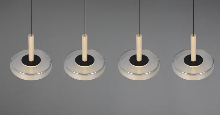 Der LED Balkenpendel CELESTE ist ein Produkt „Made in Germany“ vom angesehenen Beleuchtungshersteller TRIO aus Arnsberg. Qualität, exklusive Designs und komfortable Bedienungen zählen zu den Markenzeichen, deren gehoben Ansprüchen dieses CELESTE-Model kompromisslos erfüllt. 4 x 7,5 Watt, festsitzende LEDs mit je bis zu 750 Lumen und insgesamt bis zu 3.000 Kelvin erzeugen eine grandiose Beleuchtung für gesellige Abende am Wohnzimmertisch, kulinarische Erlebnisse am Esszimmertisch oder für erfolgsorientierte Besprechungen am Konferenztisch. Gefertigt ist der LED Balkenpendel aus robustem, widerstandsfähigem Metall und flachschalenähnlichen Schirmen aus feinstem Rauchglas in Grau. Die Pendel erstrecken auf einer Breite von 115 cm und sind zwischen 50 und 200 cm höhenverstellbar.