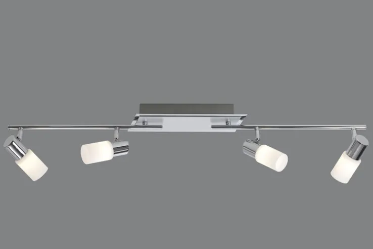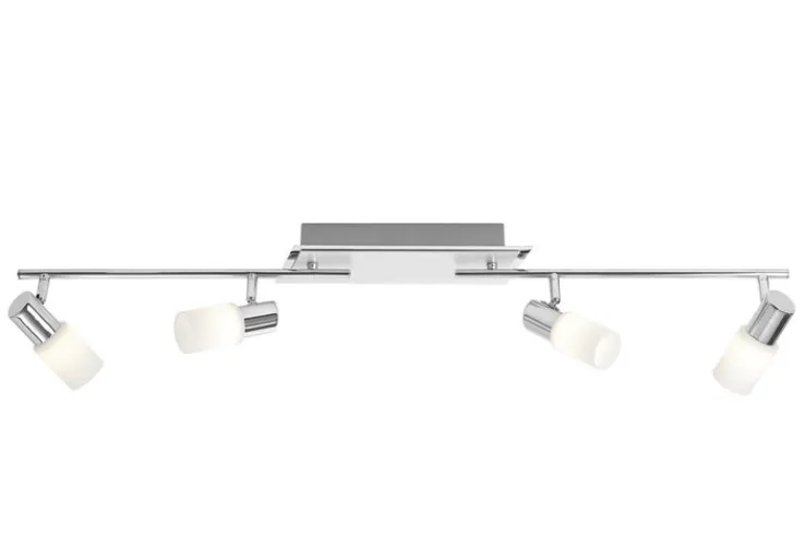 Die TRIO Deckenlampe CLAPTON kombiniert geradliniges Design mit einem angenehm warmweißen Licht der Temperatur 3000 K. An dem knapp einen Meter langen Balken sind 4 einzeln verstellbare Spots angebracht. Durch die individuelle Ausrichtung können die Strahler dekorative Lichteffekte in einzelnen Teilen des Raumes setzen.