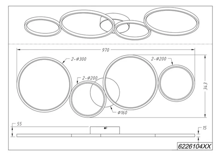 Die ungewöhnliche Formgebung macht diese Deckenlampe zu einem gelungenen Blickfang. Sie setzt sich nämlich aus vier Kreisen zusammen, die hintereinander aufgereiht sind. Genauso, wie die Basis der Lampe bestehen auch sie aus hochwertigem Metall und zeigen sich mit einer matten Oberfläche. Die Lampe wird mit einem passenden LED-Leuchtmittel geliefert. Das ist extrem energiesparend und bringt eine Lichtleistung von 3300 lm mit sich. Die Farbtemperatur liegt bei 3000 K. Außerdem bietet die LED eine Brenndauer von ungefähr 30.000 Stunden.