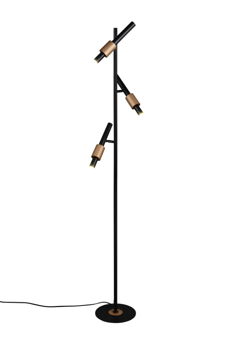 Die TRS IKARIS LED Stehlampe von Trio vereint modernes Design mit funktionaler Beleuchtung. Mit einer Höhe von 150 cm und einem Durchmesser von 28 cm bietet diese Lampe eine elegante Präsenz in jedem Raum. Die Hauptfarbe ist Schwarz, ergänzt durch bronzefarbene Akzente, die den drei verstellbaren Leuchtköpfen einen besonderen Charme verleihen. Diese Leuchte ist aus hochwertigem Metall gefertigt und verfügt über eine matte Optik, die sich nahtlos in moderne Wohnräume einfügt.