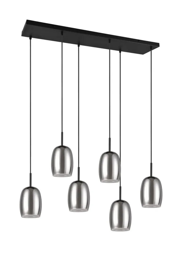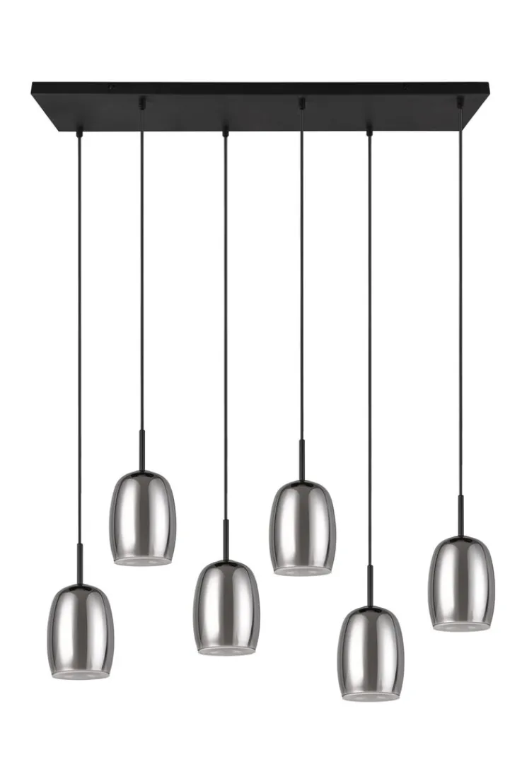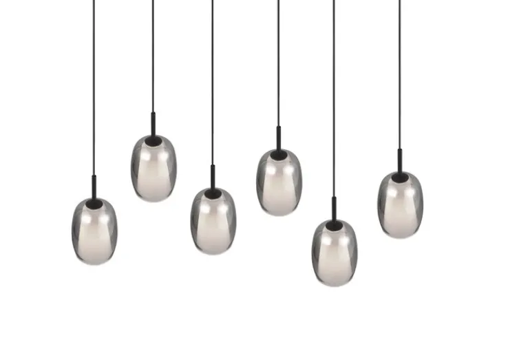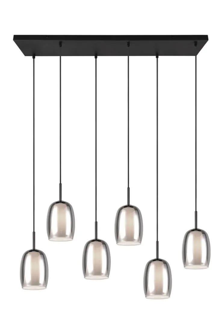 BARRET ist höheneinstellbar und zaubert über jeden Tisch ein besonders sanftes und stimmungsvolles Licht. Die 6-flammige Hängeleuchte besteht aus schwarzem Metall in Kombination mit einem rauchfarbigen Glasschirm und einem inneren, weißen Glasschirm. Dadurch strahlt sie Eleganz und Modernität aus. Sie passt sich fast jedem Einrichtungsstil an und setzt einen stilvollen Akzent. Sie kann mit LED Leuchtmitteln betrieben werden, die für eine hohe Lichtqualität sorgen und sehr energiesparend sind. LED Leuchtmittel haben eine lange Lebensdauer und schonen die Umwelt.