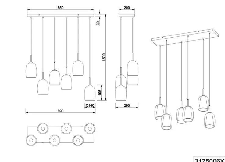 Zu einem modernen Wohnstil passt dieses TRIO Retrofit Balkenpendel TRS BARRET in Schwarz /Rauchfarbig. Das Balkenpendel verfügt über eine Breite von 89 cm und ist 6-flammig.
