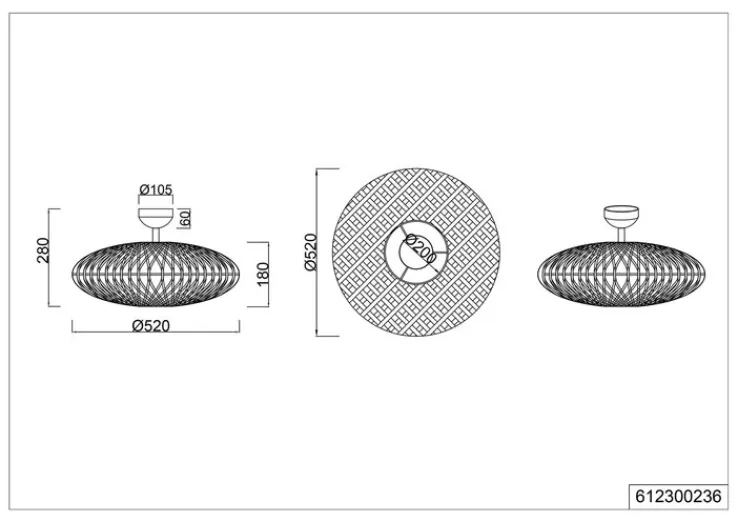 Die beiden Brennstellen benötigen die Leuchtmittelarten AGL/Retrofit. Außerdem ist bei deren Kauf auf die Fassung E27 zu achten. Der Energieverbrauch der Deckenlampe liegt bei maximal 80 Watt. Diese kann in allen Wohnräumen außer Feuchträumen eingesetzt werden. Sie sieht beispielsweise in einem Schlaf- oder Gästezimmer, im Essbereich oder Wohnzimmer sehr dekorativ aus. Die schicke Form entsteht durch das Naturmaterial Sisal, das wie ein Netz gearbeitet ist.