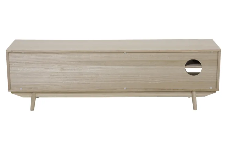 Das TV-Lowboard vereint einen Korpus aus furnierter Holznachbildung und Paulownia Massivholz mit Fronten aus Rattan-Geflecht. Dadurch ergibt sich ein extravagantes Möbelstück im Skandi-Stil, das elegant und natürlich wirkt. Mit seinem naturbelassenen Look verleiht es dem Wohnzimmer zudem ein gemütliches Ambiente, in dem das Entspannen leichter fällt. Neben dem besonderen Design überzeugt das Lowboard mit Stauraum hinter zwei Drehtüren und zwei offenen Gerätefächern mit Kabeldurchlass.