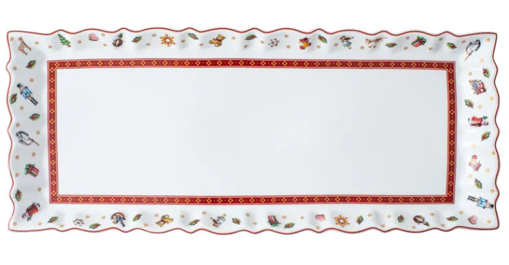 Die Villeroy & Boch Kuchenplatte TOY’s DELIGHT misst in Breite und Länge 15 x 38 cm. Das nostalgische Weihnachts-Porzellan zeigt ein weihnachtliches Streumotiv in Weiß, Rot und Grün.