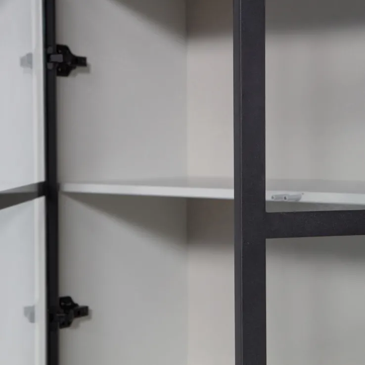 Die Vitrine BASIC und die acht Einlegeböden sind aus massivem Holz gefertigt und lackiert. Die Scharniere und Beschläge bestehen aus Ganzmetall. Die Drehtüren der Vitrine sind mit einer Push-To-Open- und einer Soft-Close-Funktion ausgestattet.