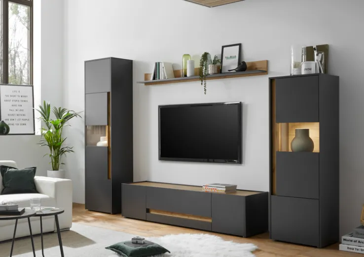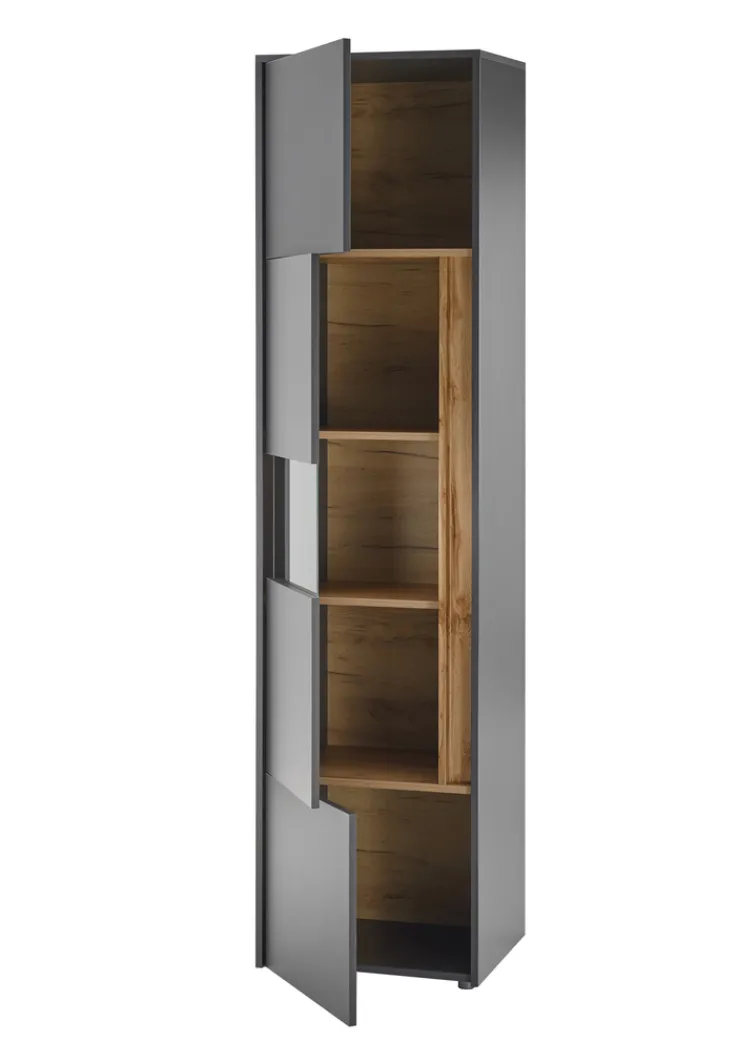 Die weißen Oberflächen der Vitrine bilden einen hervorragenden Kontrast zu den Innenfächern aus Eiche-Dekor. Dank der Tür mit Glas-Einsatz kann man Teile des Innenlebens jederzeit im Blick behalten. Die Vitrine CITY eignet sich somit nicht nur hervorragend für Wohnzimmer und Jugendzimmer, sondern kann auch in Gästezimmern auf ganzer Linie überzeugen. Eleganter Stauraum mit der ganz besonderen Note.