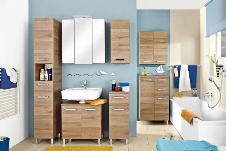 Der Wandschrank OFFENBACH bietet sich als nützliche und geräumige Aufbewahrung im Badezimmer an. Durch seine kompakten Maße lässt er sich auch optimal in kleinere Räume integrieren.