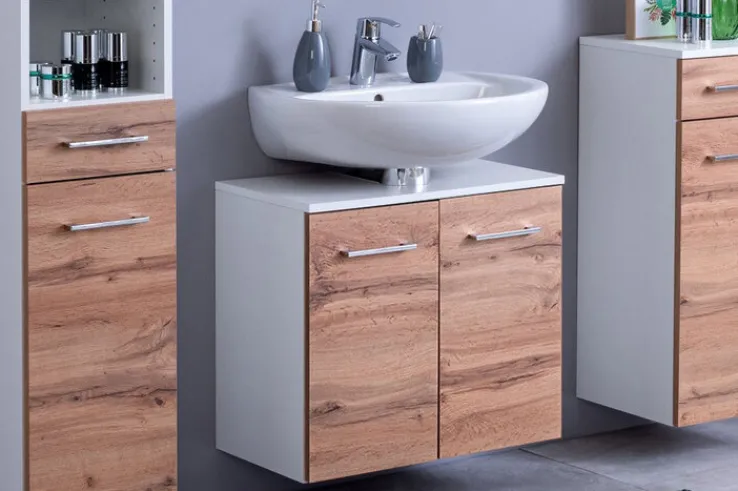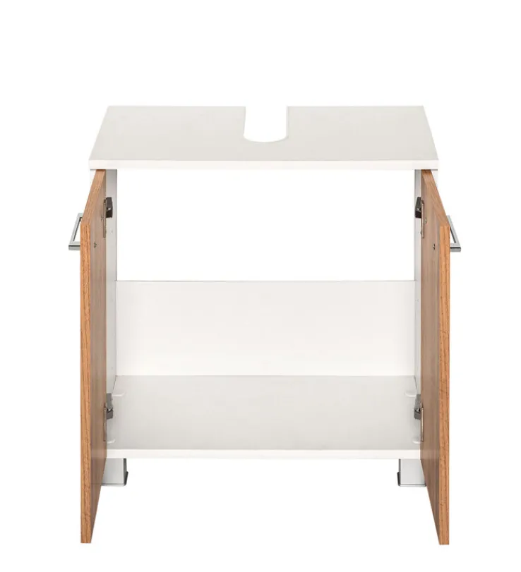 PARIS verfügt über einen Siphonausschnitt sowie über Hängebeschläge und wurde mit zwei Drehtüren mit Soft Close Funktion ausgestattet. Hinter diesen Türen ist viel Platz, um die verschiedensten Bad-Utensilien unterzubringen. Die hochwertige Verarbeitung mit dem Prädikat „Qualität aus Deutschland“ überzeugt mit Langlebigkeit und Strapazierfähigkeit. Die stabilen Metallgriffe runden die stilvolle Optik gekonnt ab. PARIS ist ein ebenso praktischer wie ästhetischer Waschbeckenunterschrank, der nicht nur für Ordnung sorgt, sondern auch für ein behagliches Ambiente.