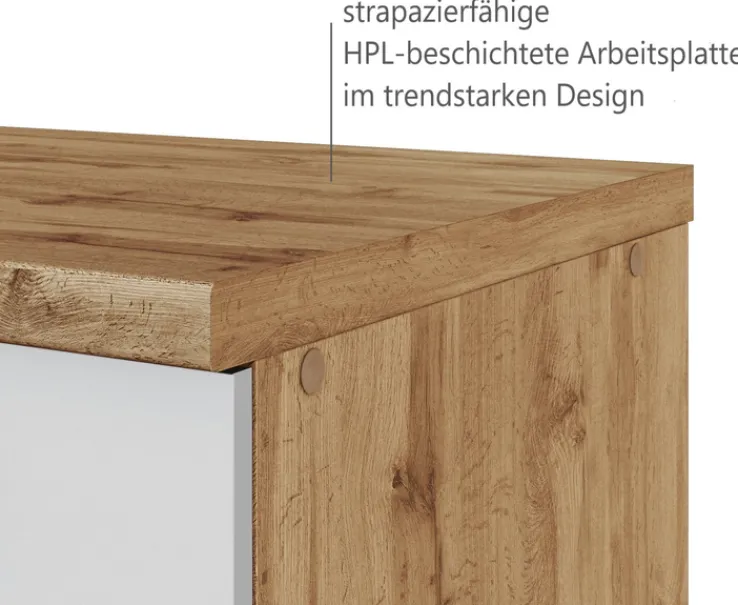 Farbe: BraunWeißDekorfarbe: EicheFarbton: Weiß/Wotan Eiche NachbildungHauptfarbe: Weiß