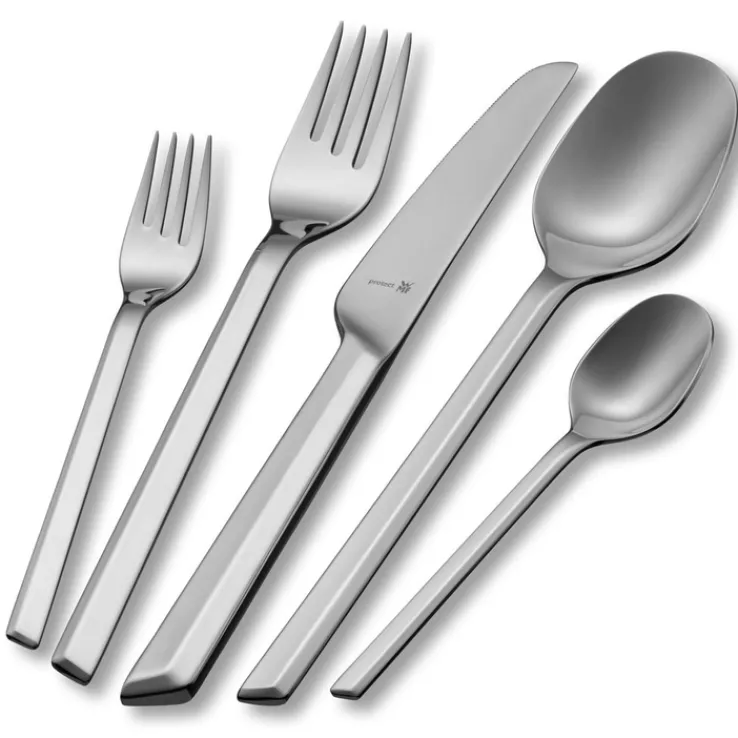 Das WMF Besteck-Set KINEO ist 30-teilig und besteht aus robustem und pflegeleichtem Edelstahl. Die silberfarbige Ausführung ist zeitlos schick und fügt sich stimmig in die übrige Dekoration in Küche oder Esszimmer ein.