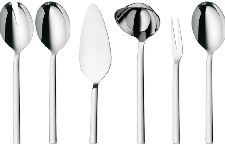 Das WMF Besteckset LYRIC besteht aus 66 Teilen und bietet eine elegante Lösung für jede Tafel. Gefertigt aus hochwertigem Edelstahl, ist das Set sowohl kratzfest als auch rostfrei, was Langlebigkeit und einfache Pflege garantiert. Die silberfarbene Oberfläche verleiht dem Besteck ein zeitloses und stilvolles Aussehen, das sich nahtlos in jede Tischdekoration einfügt.