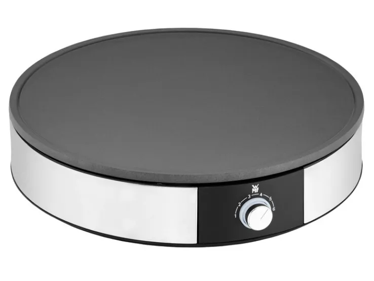 Diese moderne Crêpes-Pfanne aus der Kollektion LONO von WMF ist 3-teilig und hat ein Gehäuse aus hochwertigem, silberfarbigem Cromargan Edelstahl. Die Crêpes-Platte ist abnehmbar und spülmaschinengeeignet.
