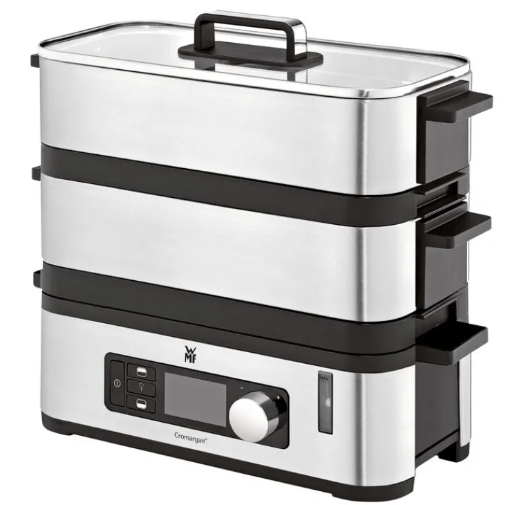 Der WMF Dampfgarer KÜCHENMINIS ist aus hochwertigem Cromargan Edelstahl 18/10 hergestellt und hat ein Fassungsvermögen für 4300 ml Inhalt. Er besitzt eine praktische Warmhaltefunktion für 40 Minuten.