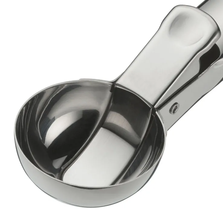 Mit dem Eisportionierer können Sie ganz schnell und einfach Eiskugeln aus dem Handgelenk portionieren – auch für sehr hartes Eis geeignet. Ideal auch zum Portionieren von Reis. Eisportionierer aus Cromargan®, Edelstahl Rostfrei 18/10 weisen sehr gute Gebrauchseigenschaften auf. Sie sind formstabil, beständig gegen Speisesäuren, geruchs- und geschmacksneutral, hygienisch und spülmaschinenfest.