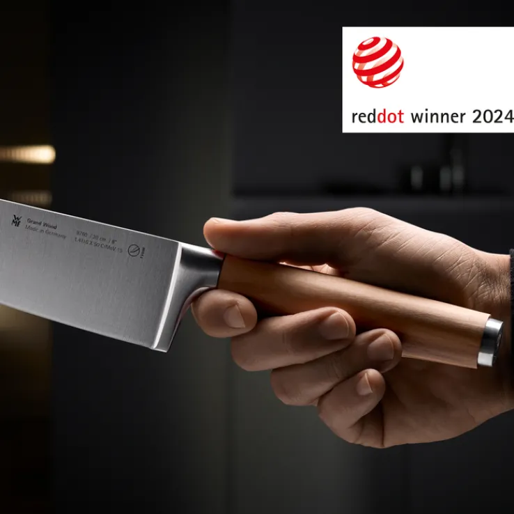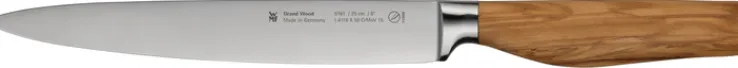 Das GRAND WOOD Fleischmesser 20 cm aus Edelstahl/Holz der Marke WMF kombiniert ein edles, stilvoll anmutendes Design mit einer in der Küche begeisternden flexiblen, hochscharfen Klinge. Ein besonderes Highlight ist zweifelsohne der Griff, der aus italienischem Olivenholz angefertigt wurde und mit einer lebhaften Maserung sofort Blicke einzufangen weiß.