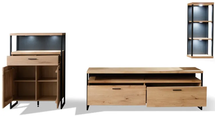 Setartikel: jaAnzahl Teile im Set: 3 Stk.Breite Setartikel 1: 95 cmHöhe Setartikel 1: 136 cmTiefe Setartikel 1: 38 cmSetartikel-Inhalt 1: HighboardTiefe Setartikel 2: 46 cmBreite Setartikel 2: 205 cmHöhe Setartikel 2: 69 cmTiefe Setartikel 3: 30 cmBreite Setartikel 3: 39 cmHöhe Setartikel 3: 101 cmAnzahl Beleuchtungen inklusive: KeineAnzahl Einlegeböden inklusive: 1Anzahl offene Fächer inklusive: 2
