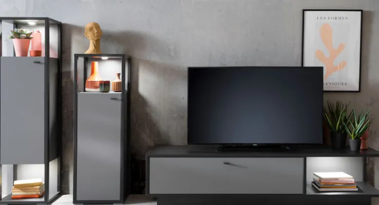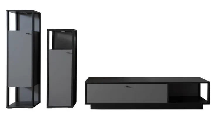 Die 3-teilige Wohnwand LUXOR III in der modernen Farbkombination Royal Grau/Anthrazit schenkt dem Wohnzimmer einen top modernen Look. Zudem bietet die Wohnwand umfangreichen Stauraum für Alltagsgegenstände sowie Ausstellungsflächen.