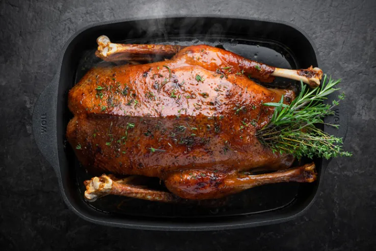 Der schwarze Gussbräter ECO LOGIC von WOLL ist mit einem Volumen von 7,8 Litern ideal für ganze Geflügel und große Braten geeignet. Das Modell aus Aluminium und Glas hat eine Breite von 31 Zentimetern, eine Tiefe von 26 Zentimetern und eine Höhe von elf Zentimetern.