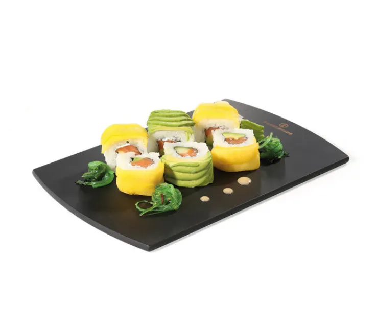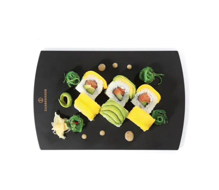 Das Brett hat eine klassische rechteckige Form mit leicht abgerundeten Seiten. Es besteht aus einem robusten Holzfiberlaminat und ist dadurch sehr unempfindlich. Fett und Feuchtigkeit können ihm nichts anhaben. Außerdem lassen sich Essensrückstände schnell und unkompliziert entfernen. Die Oberfläche ist schwarz meliert und verleiht dem Brett eine zeitlose Optik, sodass es vielfältig kombiniert werden kann. Gerne können Sie es auch zum Servieren von Käse, Wurst oder anderen Leckereien benutzen.