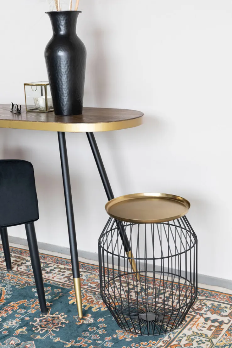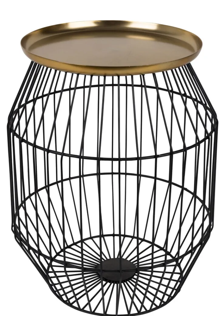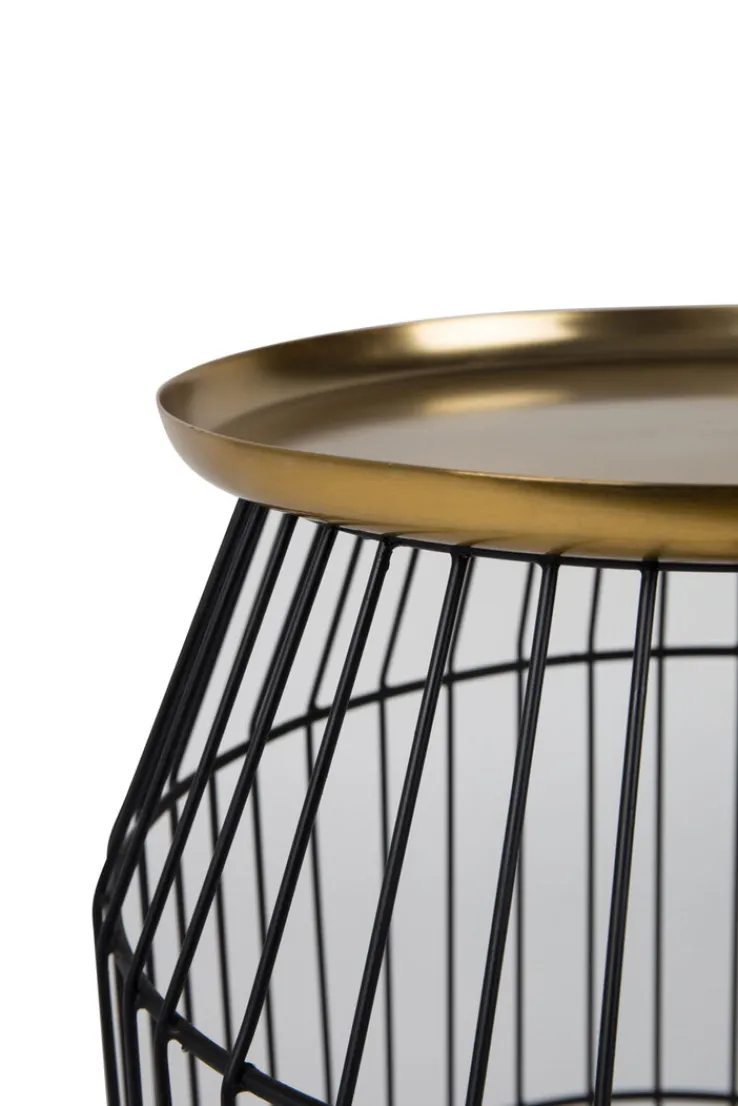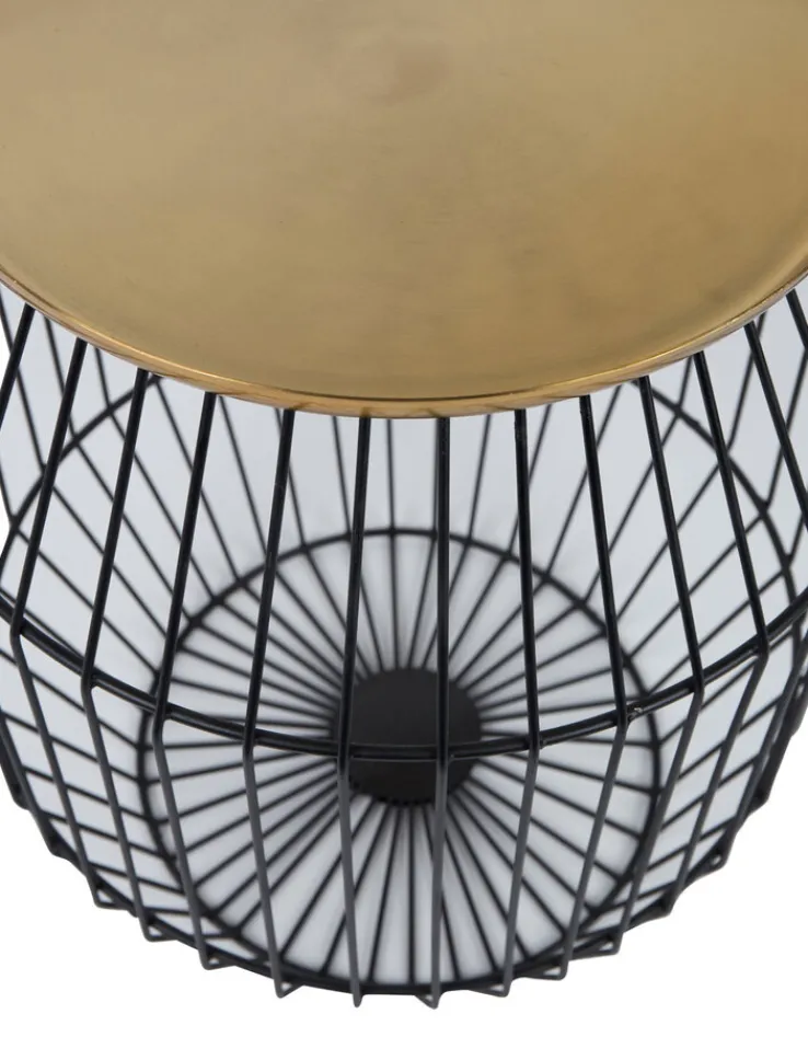 Wie ein edler Drahtkorb präsentiert sich der schwarz-goldene Beistelltisch KEVIN in der Größe 37 x 46,5 cm, der aus gleich zwei verschiedenen Metallen besteht. Sein ungewöhnlicher Look bringt frisches Flair in den Raum.