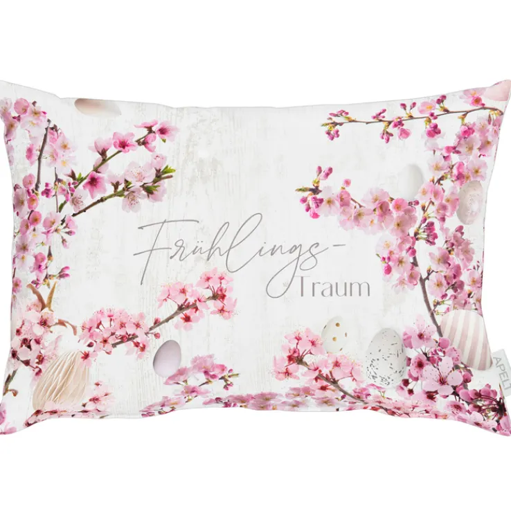 Die schönsten Frühjahrsmotive sind auf dem APELT Kissen KIRSCHBLÜTE vereint. Zarte Blütenzweige und Ostereier treffen hier zusammen. So kommt im Handumdrehen ein zarter Frühlingshauch in den Wohnbereich. Mal wird das Kissen zum Deko-Objekt, mal dient es als bequeme Nacken- und Rückenstütze. Die Marke APELT steht für beste Qualität, die sich auch bei diesem Kissen zeigt. Es ist 75 % Polyester und 25 % Baumwolle, OEKO TEX(R) STANDARD 100 zertifiziert, Made in Europe und kann im Schonwaschgang bei 30 °C gewaschen werden. Bitte Pflegehinweise am Artikel beachten.