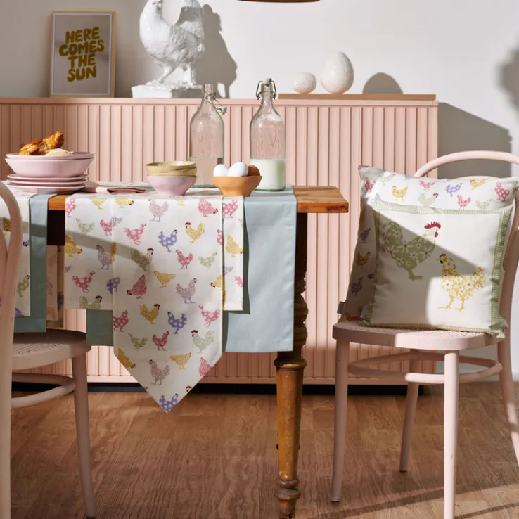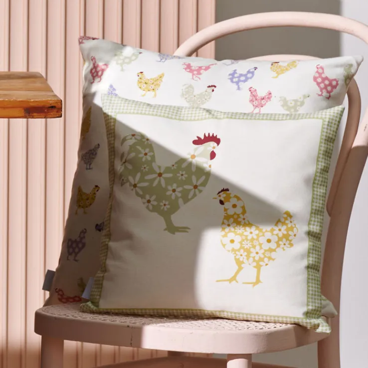 Die mehrfarbige Kissenhülle HAHN & HUHN hat eine Größe von 40 auf 40 cm und kommt im Frühjahr als Osterdekoration infrage. Das Produkt lässt sich mit weiteren, dazu passenden Dekoartikeln kombinieren.