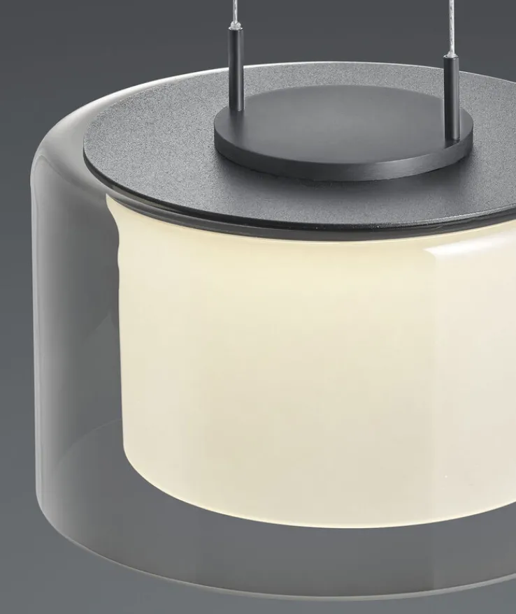 Drei LED-Leuchtmittel sind in der LED Pendellampe GRAND SMOKE von BANKAMP fest installiert. Zusammen haben sie einen Energieverbrauch von 66 Watt und eine Lichtleistung von 6000 Lumen. Die BANKAMP LED Pendellampe GRAND SMOKE ist dimmbar, sodass sich ihre Lichtfarbe zwischen 2200 und 2700 Kelvin variieren lässt. Die Brenndauer beträgt rund 35.000 Stunden. Der adrette Einrichtungsgegenstand ist modern gestaltet. Er findet über dem Esstisch oder dem Wohnzimmertisch einen idealen Platz.