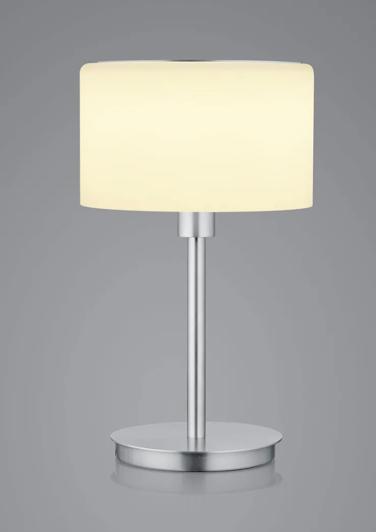Die BANKAMP Retrofit Tischlampe KARL75 ist 34 cm hoch und hat einen Durchmesser von 20 cm. Ihren minimalistischen Lampenfuß aus mattem Metall kombiniert sie mit einem großen Schirm aus mattem Opalglas. Der Glasschirm strahlt das Licht in alle Richtungen ab und sorgt für eine komplett blendfreie Beleuchtung. Die Tischleuchte ist für ein 10 Watt AGL oder Retrofit Leuchtmittel mit E14-Fassung geeignet. Dadurch punktet sie neben stylischem Look und komfortablem Licht mit einem geringen Energieverbrauch.