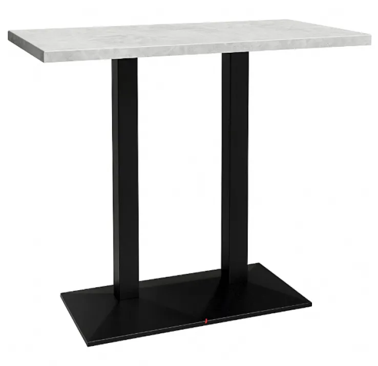 Das schwarze Säulengestell aus Metall sorgt für Stabilität und einen festen Stand. Die matte Optik des Gestells harmoniert perfekt mit der hellen Tischplatte und schafft einen ansprechenden Kontrast. Der Tisch ist rechteckig und fügt sich nahtlos in moderne Wohnkonzepte ein. Eine Tischverlängerung ist nicht vorgesehen, was die klare Linienführung des Designs unterstreicht. Dieser Bartisch ist eine stilvolle Ergänzung für jedes Zuhause und eignet sich ideal für den täglichen Gebrauch.